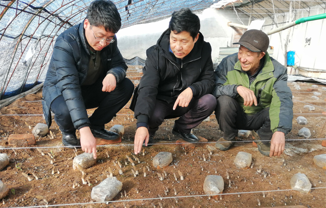 1月18日,农学与生物科技学院贠小波、乔亚科、侯东军三位专家来到青龙苏杖子村,对该院“三区”科技特派员孙伟明博士全程技术指导的羊肚菌高产栽培基地进行实地调研,并对Beat365帮扶村----青龙镇龙潭村食用菌栽培基地实地考察指导生产。