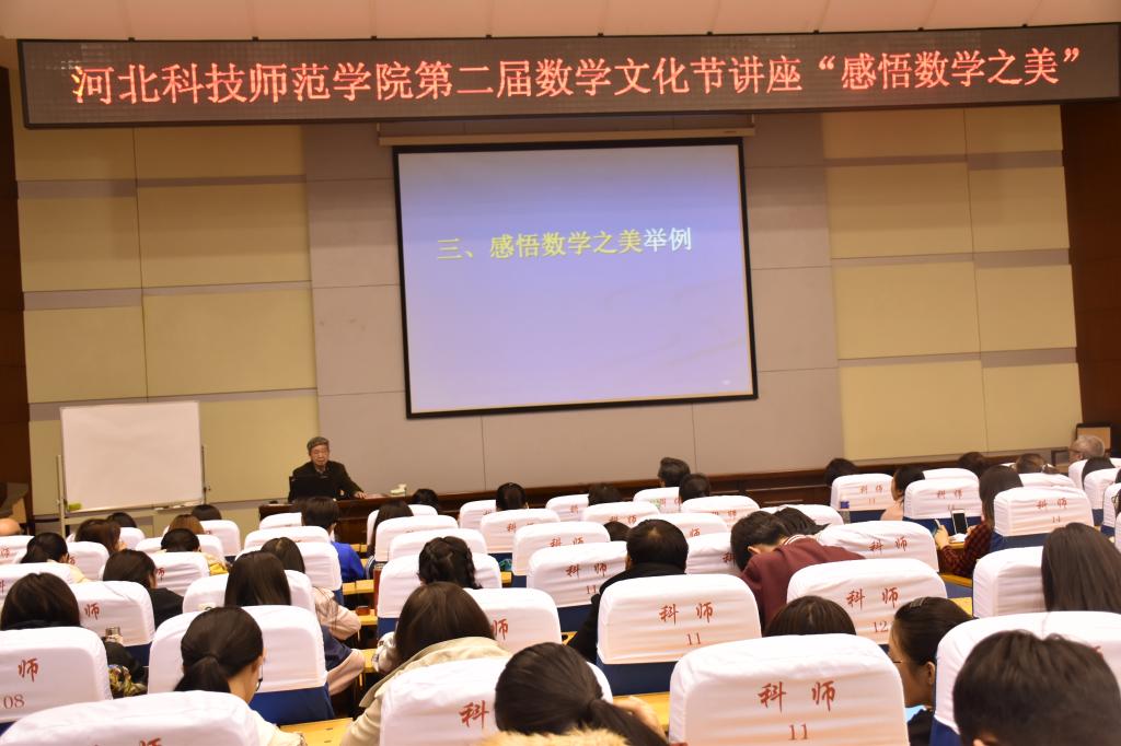 2019年4月14日下午,数学与信息科技学院在秦皇岛校区学术交流中心举办第二届数学文化节之“感悟数学之美”专题讲座。首届国家级教学名师、南开大学数学科学学院顾沛教授以“感悟数学之美——从数学文化谈起”为主题,从多方面介绍了数学文化,着重介绍了要学习数学思维和逻辑方法,理解数学思维,并通过把问题一般化和特殊化的思考方法,来掌握解决问题的规律,让同学们感受数学文化的博大精深以及数学文化的魅力。此外,顾沛教授现场提出若干数学益智问题供同学们思考与感受,并与同学们进行互动,为同学们耐心讲解。