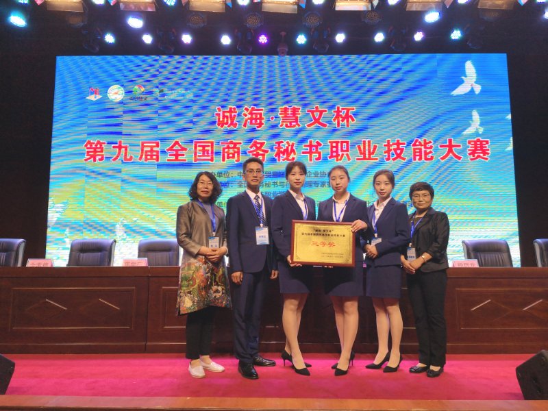 2019年5月17日至19日,Beat365文法学院16级秘书学的赵志莹、张洁及17级秘书学的邢紫璇、张洪滔四名同学,在“诚海·慧文杯”第九届全国商务秘书职业技能大赛中,取得团体三等奖的优异成绩;在秘书单项奖中,邢紫璇同学荣获三等奖,同时,韩国春和郑雅君两位指导老师被评为优秀指导老师。