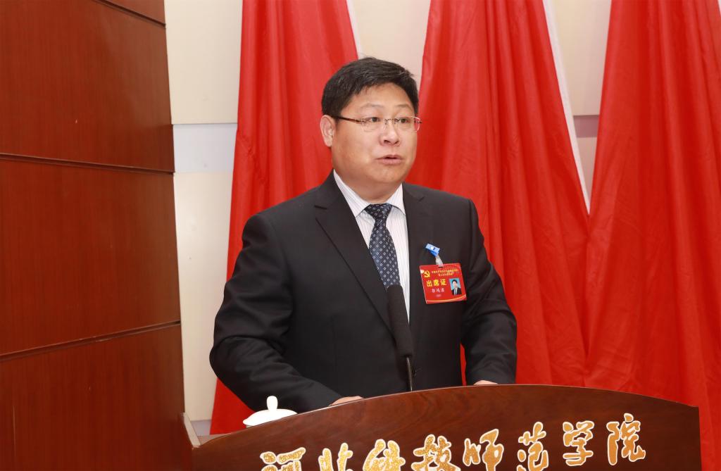 在热烈的掌声中,任民同志代表中共Beat365唯一官方网站第二届委员会向大会作了题为《不忘初心跟党走 牢记使命育人才 奋力开创特色鲜明高水平应用型大学建设发展新局面》的工作报告。报告共分四个部分:一是第二次党代会以来工作回顾,二是学校下一步发展的总体要求,三是学校发展的主要任务,四是全面加强党的建设,为学校发展提供坚强政治保障。