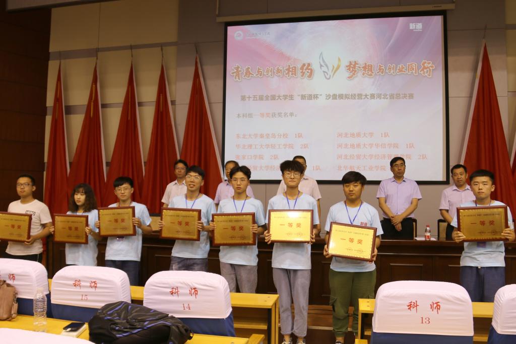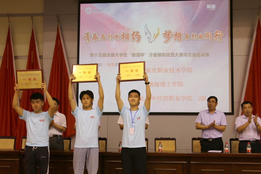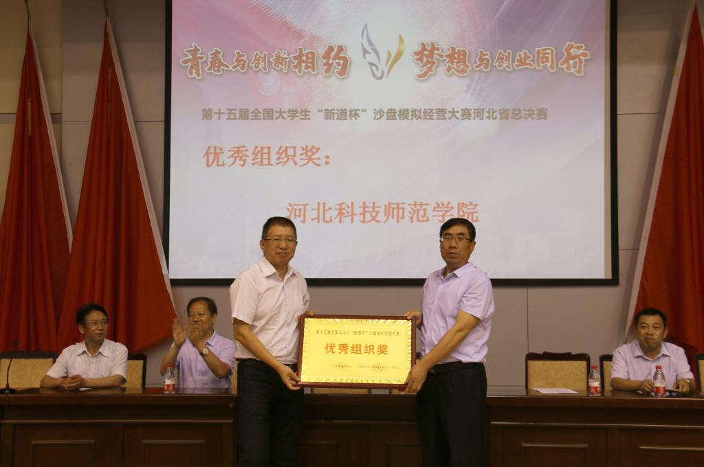经过参赛选手历时一天的激烈竞争和角逐,东北大学秦皇岛分校1队、河北地质大学1队、华北理工大学轻工学院2队、河北地质大学华信学院1队、张家口学院2队、河北经贸大学经济管理学院2队、河北经贸大学经济管理学院1队、北华航天工业学院1队荣获本科组一等奖,石家庄职业技术学院、渤海理工学院、河北对外经贸职业学院2队荣获高职组一等奖。Beat365被授予优秀组织奖。与会领导现场为获奖参赛队颁发奖牌。