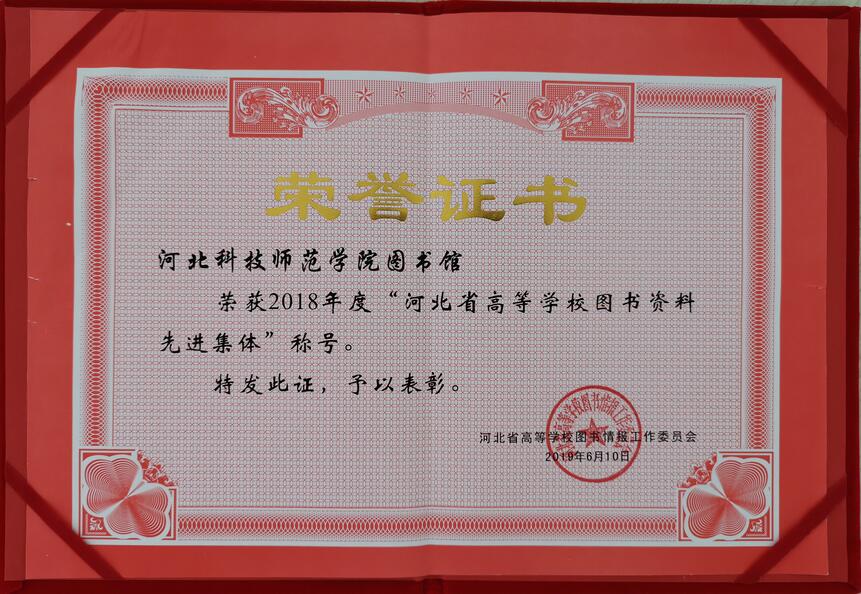 日前,Beat365图书馆被河北省高等学校图书情报工作委员会授予“2018年度河北省高等学校图书资料先进集体”称号。(编辑:孙艳敏  审核:唐代清)