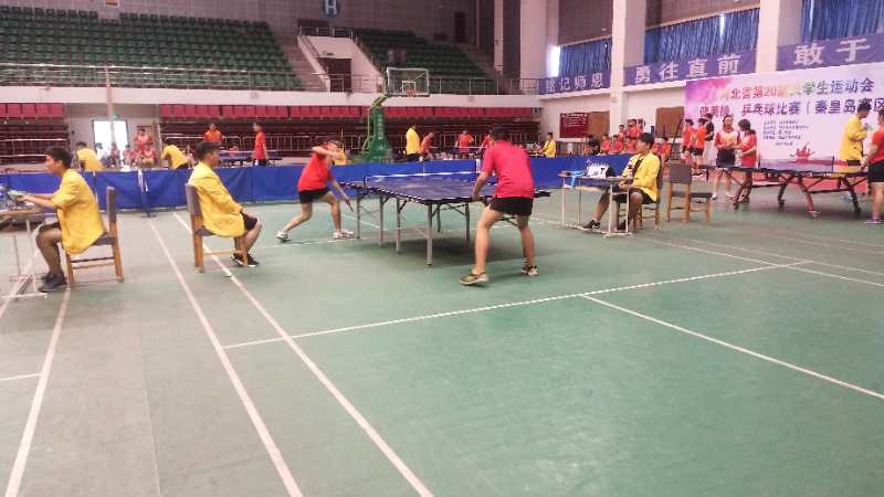 6月23日,河北省第二十届大学生运动会乒乓球比赛(秦皇岛赛区)在燕山大学体育馆隆重举行,来自秦皇岛市6所高校的96名队员参加了比赛。
