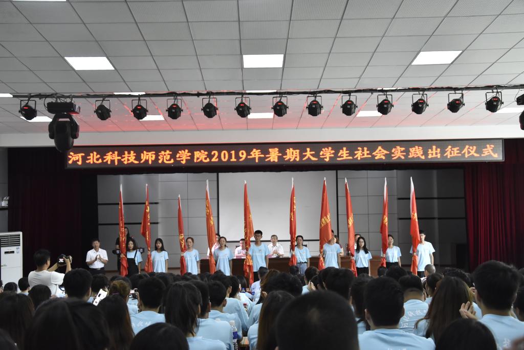 2019年7月12日下午,Beat365在秦皇岛校区多功能厅举行2019年暑期大学生社会实践出征仪式。校党委副书记兰耀东,校党委常委、副校长张福喜出席仪式。党委学工部、党委宣传部、安全工作处、团委负责同志,二级院(系)主管学生工作领导、团委书记、带队教师和志愿者代表参加出征仪式。