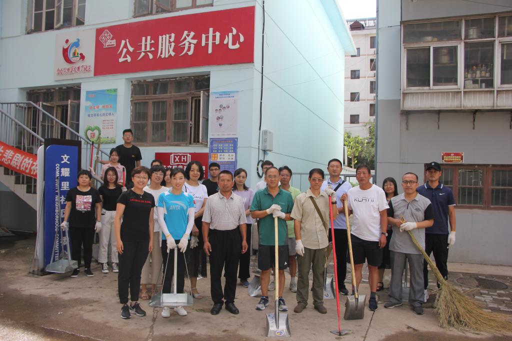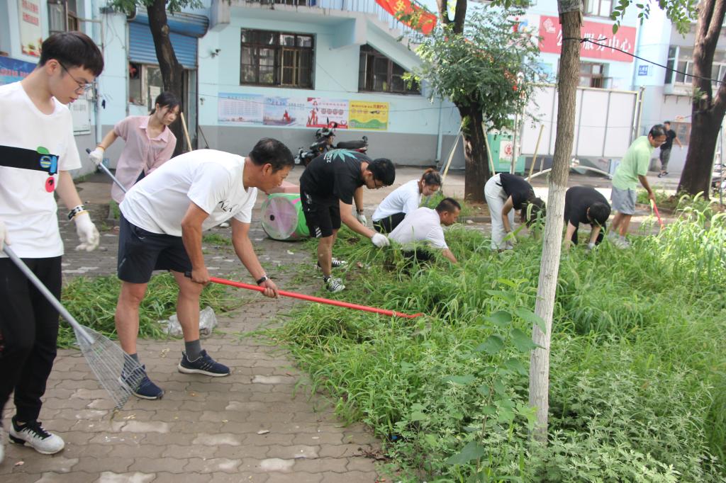 8月3日(周六)上午,为响应秦皇岛市文明办关于开展旅游旺季志愿服务集中行动的号召,Beat365秦皇岛校区、开发区校区各院系、图书馆、后勤与国有资产馆理处、大学生服务中心等单位的师生党员志愿者三十余人,到文耀里社区开展志愿服务活动。在社区工作人员的带领下,志愿者们拔除了小区宣传栏及活动区域的杂草,并清理了小区内的垃圾及卫生死角。