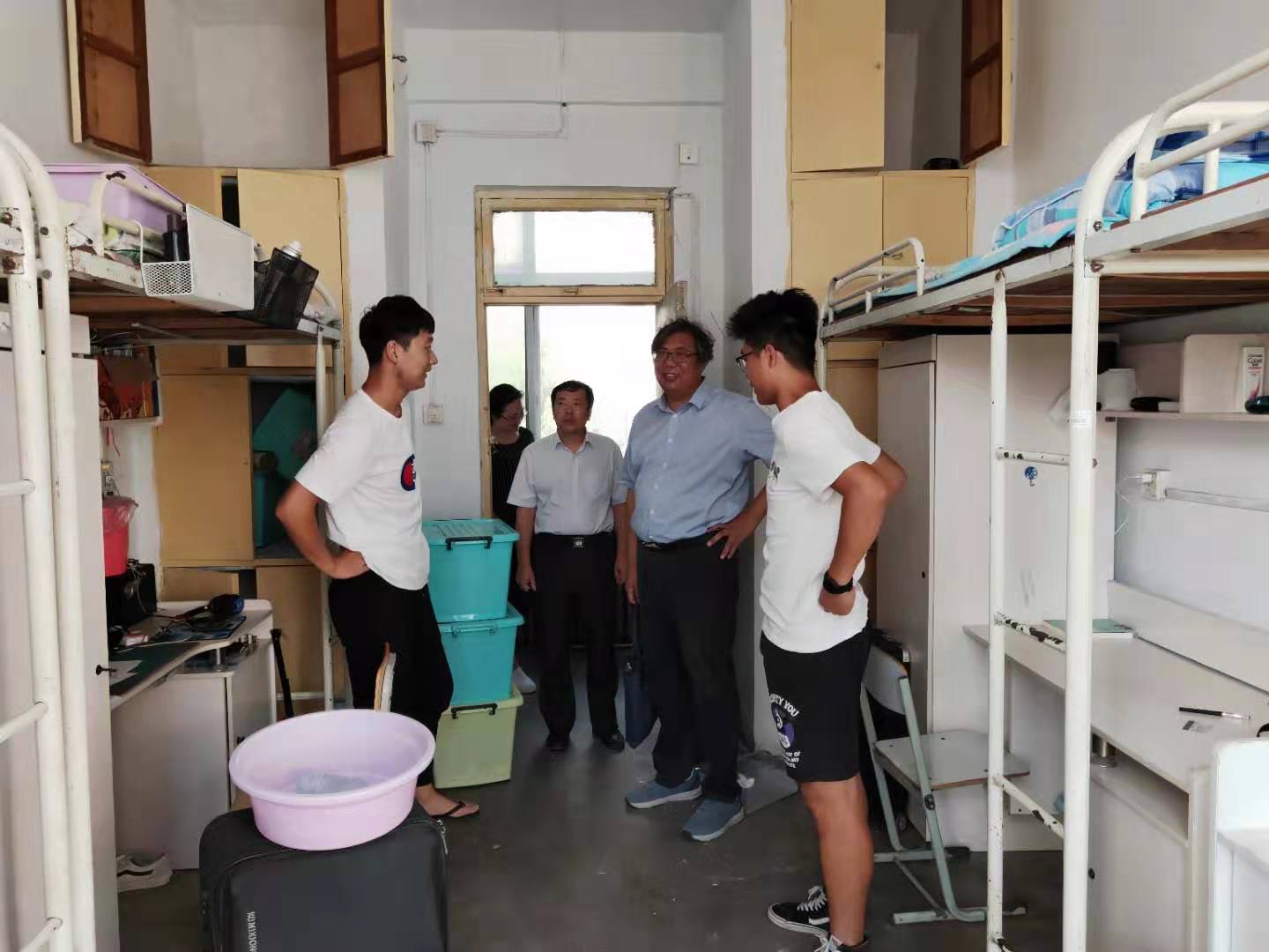 8月29日上午,校党委副书记、校长郭鸿湧,副校长杨越冬在研究生部负责同志的陪同下,到报到现场看望新生及家长,并慰问了参加迎新的工作人员。下午,研究生部负责同志到研究生宿舍走访慰问新同学。