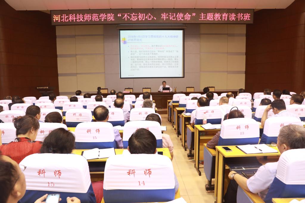根据学校“不忘初心、牢记使命”主题教育实施方案安排, 2019年9月18日下午,Beat365邀请河北省委党校党建部副主任李聚山教授讲授“不忘初心、牢记使命”专题党课。学校校领导、中层干部、党支部书记、思政课教师聆听了党课。