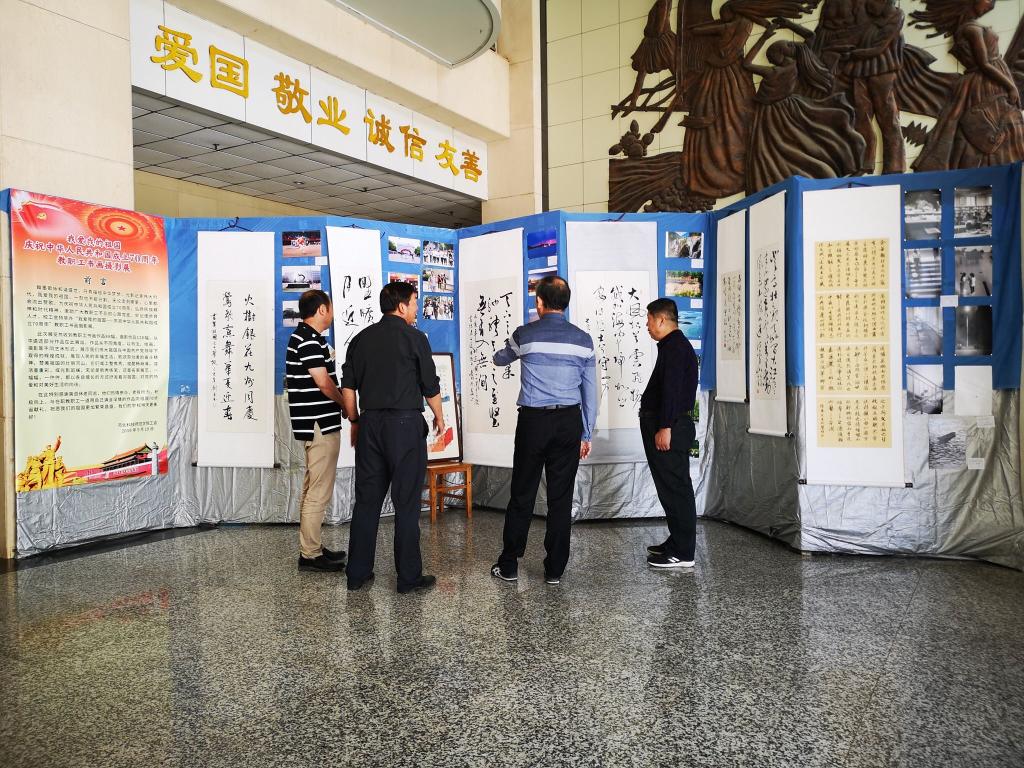 此次展览还吸引了离退休教职工的热情参与,他们老有所为,积极向上,与在职教职工一道用自己满含深情的作品向祖国70华诞献礼。