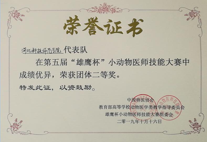 动科学子获“雄鹰杯”小动物医师技能大赛二等奖