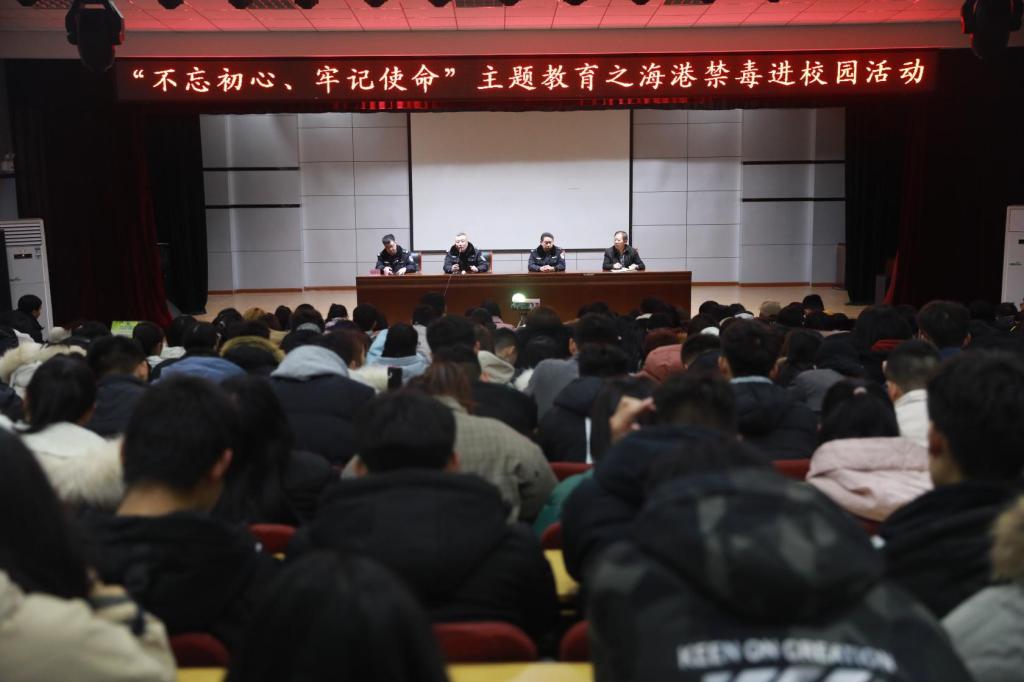 12月2日下午,海港公安分局禁毒大队副大队长齐占涛、民警陈识予和海港燕园派出所的辖区民警王宝军,应邀来Beat365作“禁毒防毒知识”及“如何防止网上诈骗”专题讲座。Beat365秦皇岛校区的财经、物理、体育、工商、数信及城建等院系的280名学生代表及安全工作处工作人员听取了讲座。