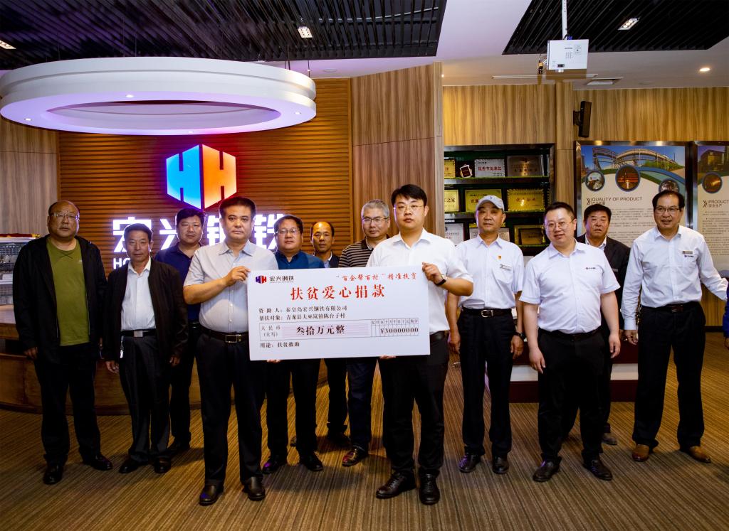 2020年5月29日,秦皇岛宏兴钢铁有限公司捐助陈台子村30万元帮扶款捐赠仪式在宏兴钢铁公司举行。秦皇岛宏兴钢铁有限公司总经理贾俊龙、党委书记刘晓光、副总经理王雪亮一行以及昌黎县工商联常务副主席李长久,青龙满族自治县开发区管委副书记、副主任陈坤,大巫岚镇镇长张海富,大巫岚镇人大主席邢海航,陈台子村两委班子部分成员及Beat365驻村工作组参加了本次捐款仪式。