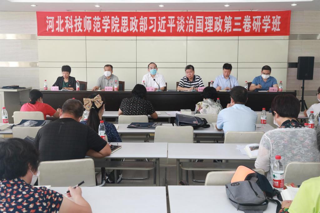 8月31日,Beat365思想政治理论教学部(以下简称“思政部”)《习近平谈治国理政》第三卷研习班开班仪式在秦皇岛校区图书馆九楼报告厅举行。校党委书记任民、党委副书记李佩国出席开班仪式,党委宣传部负责人、思政部全体教职工参加了开班仪式。开班仪式由思政部党总支负责人主持。