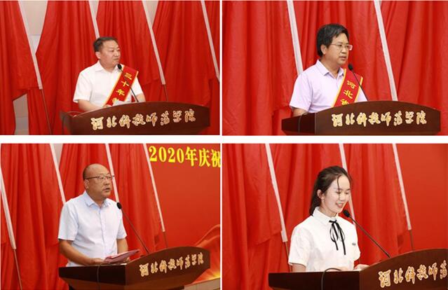 数学与信息科技学院赵立强教授、园艺科技学院刘振林博士,驻青龙满族自治县陈台子村第一书记王伟分别作为从教30年教师代表、河北省模范教师代表和驻村帮扶代表先后发言,与大家分享了他们对教师职业使命担当、深厚情怀、不懈坚守和无私奉献精神的理解和认识。城市建设学院邓洁同学代表全体学生,向所有孜孜不倦耕耘在教学、科研、管理和服务各个岗位上的老师致以节日的祝福和深深的敬意。
