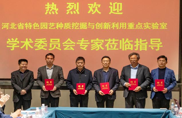 会上,冯瑞银致贺辞并为河北省特色园艺种质挖掘与创新利用重点实验室第一届学术委员会委员及实验室负责人颁发了聘书。实验室聘请李天来院士任学术委员会主任委员,北京林业大学吕英民教授和Beat365张立彬教授任学术委员会副主任委员,张小兰、秦岭、刘孟军、黄印冉、闫立英、张国君聘任为学术委员会委员。同时,张立彬聘任为实验室主任,武军凯、张国君、孙成振聘任为副主任,王同坤教授聘任为顾问。