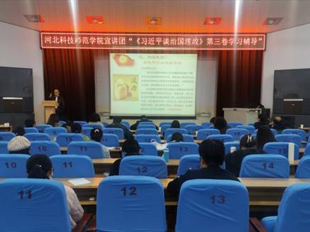 29日下午,学校思想政治理论教育宣讲团成员田辉为食品科技学院、海洋资源与环境学院、农学与生物科技学院师生宣讲《习近平谈治国理政》第三卷主要精神。田辉从《习近平谈治国理政》第三卷的导读出发,介绍了习近平治国理政的六大思维方法,重点结合第八专题《增强忧患意识,防范化解风险挑战》,向师生解读了树立底线思维,增强斗争意识,充分运用马克思主义思想方法和工作方法,把握日趋复杂的国际形势,防范和化解各种风险挑战,在危机中育新机、于变局中开新局的重要意义。