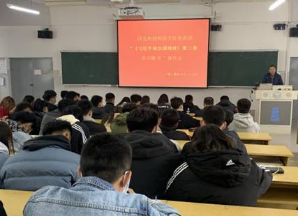 10月29日下午,学校思想政治理论教育宣讲团成员赵宗宝到体育与健康学院宣讲《习近平谈治国理政》第三卷主要精神。赵宗宝结合当前国内外形势,从《习近平谈治国理政》第三卷出版的时代背景、重要意义、核心内容和创新点以及如何结合实际学习贯彻落实等方面进行了全面系统的阐释。着重强调,要通过读原著、学原文、悟原理,来进一步增强“四个意识”、坚定“四个自信”、做到“两个维护”。同时结合体育与健康学院的特点提出要学以致用,在教育、教学、科研、管理等方面全面贯彻党的教育方针,落实立德树人根本任务,努力做好课程思政,真正培养社会主义的建设者和接班人。