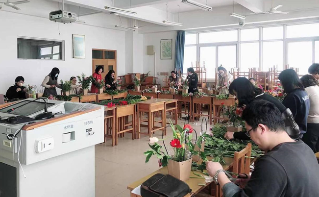 工商管理学院分工会举办了一场温馨有趣的“女神课堂——生活花艺课”。活动包括插花视频学习和插花体验两部分。视频中,花艺老师从中华花艺的历史渊源、特色、插花类型及实操过程,细致地向大家讲解了插花的基本知识和技巧,并将不同类型的插花风格生动地展现出来。女教职工们对插花表现出了极大的兴趣,经过视频,大家边看边学,修枝剪叶,亲自动手完成了一件件精美的插花作品,看着眼前一盆盆色彩缤纷、形态多姿的艺术品,每个人的脸上都绽开了美丽的笑容,纷纷和自己的花艺作品合影留念。