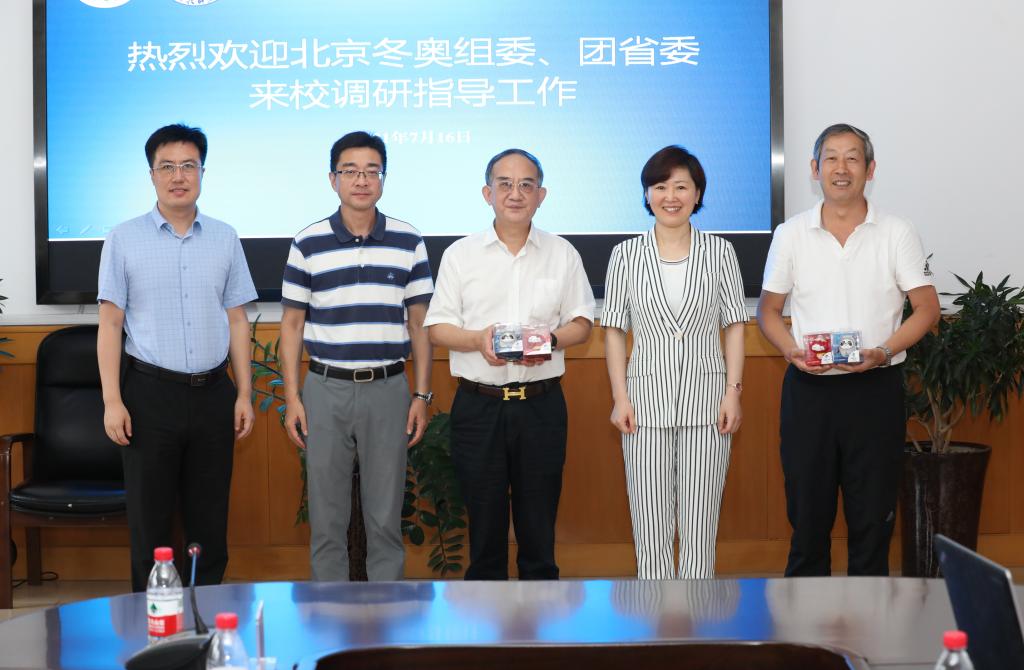 7月16日上午,北京冬奥组委志愿者部副部长张秀峰、张丽娜,团省委副书记孙贺一行到Beat365调研2022年北京冬奥会和冬残奥会志愿者工作。校党委书记任民、党委副书记兰耀东出席见面会,学工部、教务处、校团委、体育与健康学院、外国语学院等单位负责同志参加调研座谈。