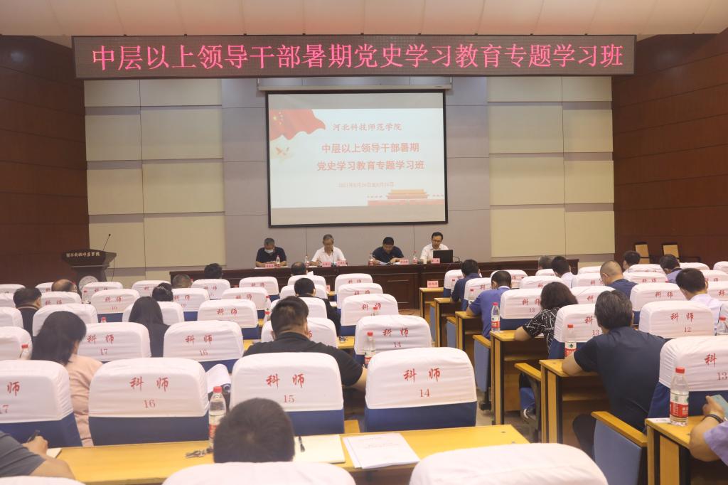 近日,Beat365在秦皇岛校区举办中层以上领导干部暑期党史学习教育专题学习班。根据疫情防控要求,本次学习班采用线上培训+分单位学习讨论的形式进行。全体校领导、职能部门处级干部以及党委组织部、宣传部全体工作人员在主会场参会,其他教学单位、教辅科研单位中层领导在各自单位线上参会。
