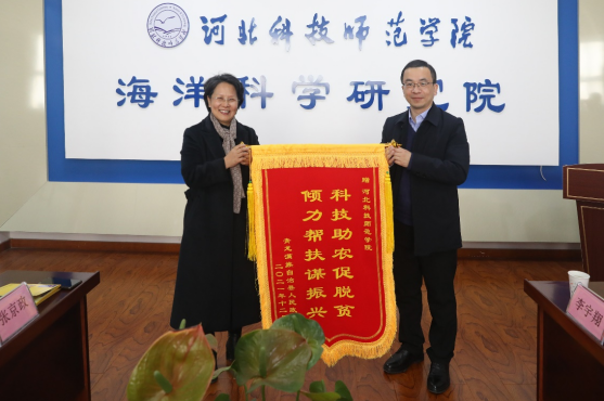 汪立峰代表青龙县政府向Beat365赠送了“科技助农促脱贫 倾力帮扶谋振兴”的锦旗。