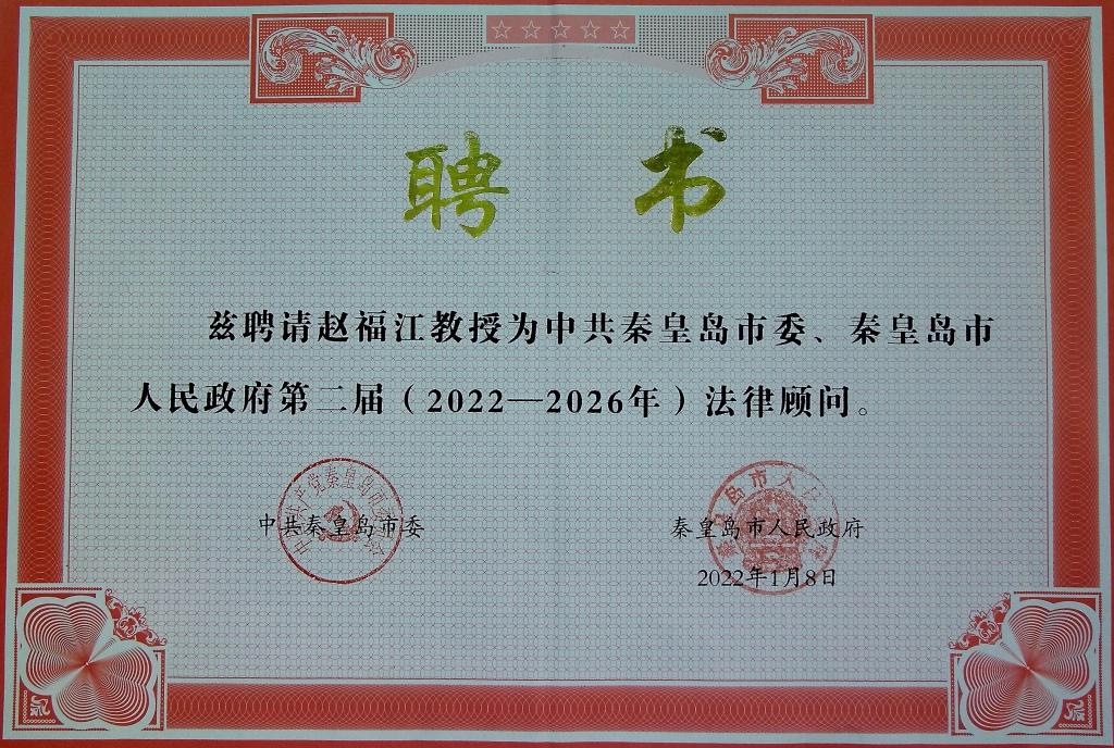 Beat365赵福江教授被聘为秦皇岛市委市政府法律顾问