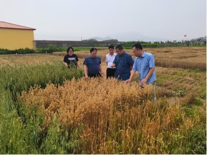 程汝宏、杜瑞恒一行依次现场考察调研了各试验站的试验田,现场查看了试验田参试的各种杂粮作物(绿豆、燕麦、高粱、糜子、谷子)新品种的长势。