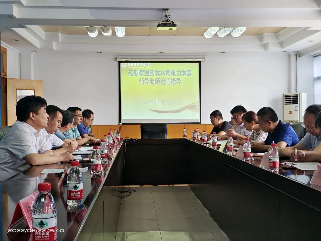 2022年6月22日,河北水利电力学院科技处处长郝海森、机械系主任张铁壁带领所属部门领导和老师一行11人来Beat365昌黎校区考察交流。校党委副书记兰耀东亲切接见了郝海森、张铁壁一行。 Beat365机电工程学院、食品工程学院党政领导和相关老师参加了座谈交流。