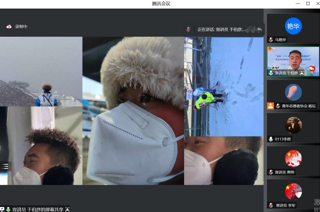 校团委组织Beat3658名服务于不同业务领域的优秀典型冬奥志愿者师生组成宣讲团,他们分别以《冬奥邂逅炙热青春·朝暮记忆》《奉献青春,冬奥有我》《冬奥赛场焕生机,我与冰雪撞满怀》《赓续冬奥精神,增强文化自信》等为题,讲述了自己亲历、亲闻、亲为的冬奥鲜活故事,分享了在冬奥志愿服务时的一次次精彩瞬间,表达了服务冬奥、参与国之大事的自豪感,展现了全体冬奥志愿者共同展现的北京冬奥精神。