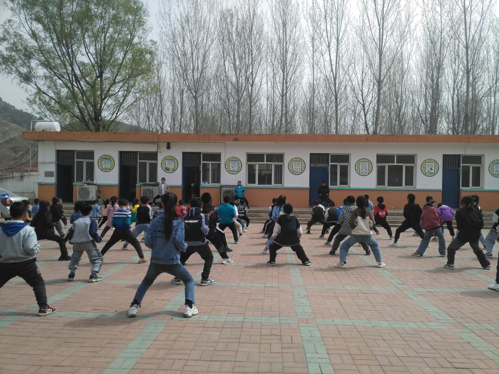 经过研究,驻村工作队将张丽老师入村帮扶的第一站选在了牡丹沟小学。该小学现有包括张庄村在内4个村的义务教育阶段学生共计71人,分布在1至6年级,还有10余名学龄前儿童,全校只9名教师。学校长时间没有体育教师,不能正常开展体育活动,非常希望能有专业教师来开展体育项目培训活动。在驻村工作队的积极对接下,张丽老师于4月13日来到牡丹沟小学,为全体学生进行了武术基本动作和礼仪培训,并做了五步拳等内容的展示。