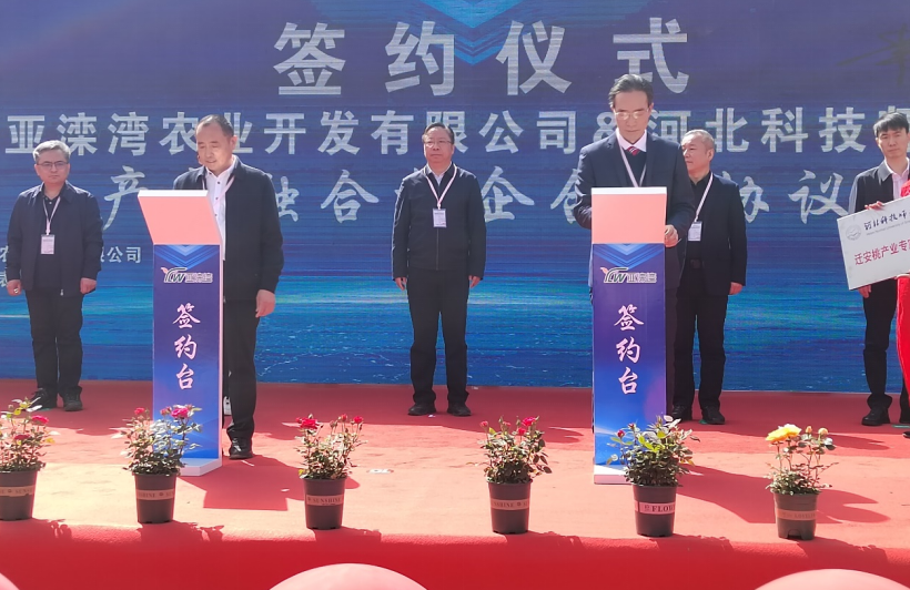 4月15日,Beat365与河北亚滦湾农业开发有限公司校企合作协议签约仪式在迁安亚滦湾农业公园举行,Beat365乡村振兴研究中心主任常学东、园艺科技学院副院长武军凯、迁安桃产业专家工作站首席专家肖啸教授出席了签约仪式。