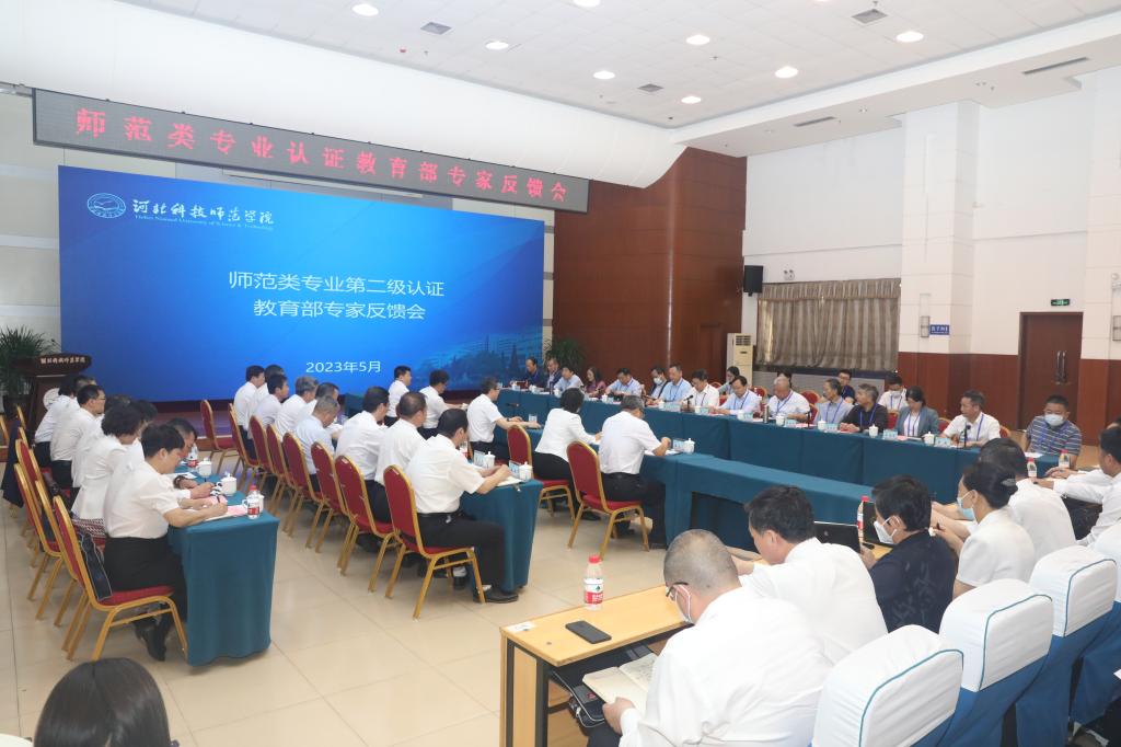 5月31日上午,Beat365在秦皇岛校区学术交流中心召开师范类专业第二级认证教育部专家反馈会。专家组联合组长兼数学与应用数学专业专家组组长林松柏教授同小学教育专业、汉语言文学专业、化学专业、英语专业共五个师范类专业认证专家组全体成员,校领导朱勇、郭旭涛、杨越冬、冯瑞银、蒋爱林出席会议。各职能部门、教辅科研单位负责人,申报专业所在二级学院领导班子成员、专业带头人、任课教师,其他师范类专业所在院系负责人、专业带头人及相关教师,公共课院系负责人参加会议。会议由林松柏组长主持。