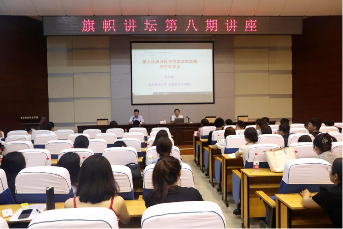 李全喜教授以“深入认识习近平生态文明思想的内容体系”为题,从深刻认识加强生态文明建设的重大意义、加强生态文明建设必须坚持的原则、坚决打好污染防治攻坚战、加强党对生态文明建设的领导等四个方面,就深入认识习近平生态文明思想的内容体系作了严谨详实、深入浅出的理论阐释。