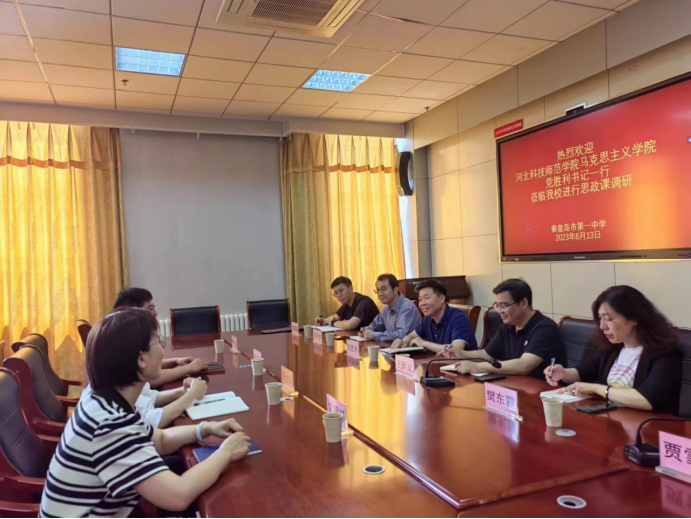 为扎实推进学习贯彻习近平新时代中国特色社会主义思想主题教育,深入学习贯彻党的二十大精神,贯彻落实习近平总书记关于教育的重要论述特别是在学校思想政治理论课教师座谈会上的重要讲话精神,充分发挥思政课在落实立德树人根本任务中的关键课程作用,推进我市大中小学思政课一体化建设,马克思主义学院一行6人于6月13日先后赴秦皇岛市第一中学、秦皇岛市第七中学和市教育局开展调研。