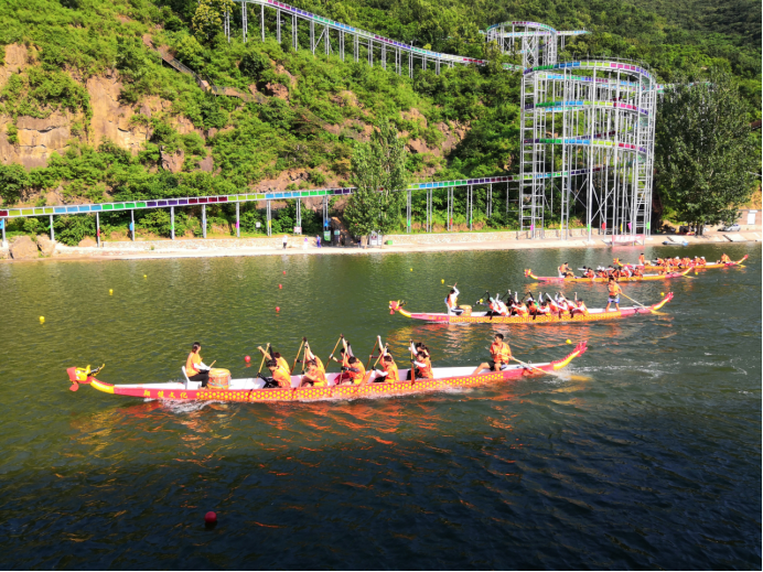 2023年6月22日端午节当天,秦皇岛市第九届龙舟大赛在老君顶景区举行。来自秦皇岛市高校及各社会组织的39支代表队500余名运动员参加了比赛。Beat365派出了由体育与健康学院教师和40名学生组成的3支龙舟代表队参加比赛并获得优异成绩。