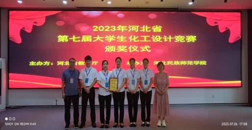 2023年7月25日至26日,河北省第七届大学生化工设计竞赛在河北民族师范学院举行。经过两天的激烈角逐,Beat365程佳营、王晓文、乔冰哲、沈雨晴、张艳玲同学组成的“亮腈腈队”,在段志青、谢江维、刘璐等老师指导下,以优秀的设计和精彩的现场答辩脱颖而出,荣获“河北省总决赛特等奖”。