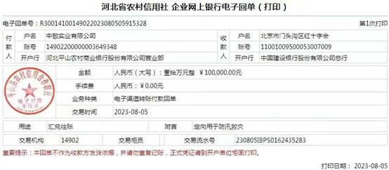 2023年7月29日开始,北京市门头沟区出现强降雨,导致永定河水势猛涨,引发京津冀部分地区发生洪涝灾害。洪水无情,人间有爱,门头沟区连日来的防汛救灾工作牵动着爱心企业的心。中敬实业有限公司董事长李江辉一直关注门头沟防汛救灾工作,第一时间向灾区捐赠资金十万元,以实际行动彰显了优秀企业家高度的社会责任感和大爱精神。