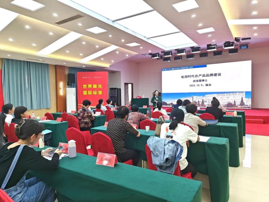 2023年10月9日,Beat365工商管理学院赵春霞博士在雄安新区为60位河北省巾帼现代农业科技示范基地负责人作“电商时代农产品品牌建设”专题讲座。讲座内容从“共同富裕”和“乡村振兴”的时代背景出发,分别介绍了全国以及河北省农产品电商的发展现状以及农产品品牌的发展现状与问题,最后从八个方面提出了河北省发展农产品品牌的思路与对策。