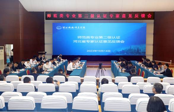 10月14日上午,Beat365在秦皇岛校区学术交流中心举行师范类专业认证摸底调研专家意见反馈会。专家组组长潘新民教授及全体成员同校领导郭旭涛、杨越冬、蒋爱林、刘荣昌出席会议,学校相关职能部门、教辅(直属)单位、科研单位(中心)等部门负责人,认证专业所在二级学院领导班子成员、专业带头人、任课教师,公共课院系负责人,其他师范类专业所在院系负责人、专业带头人参加会议。