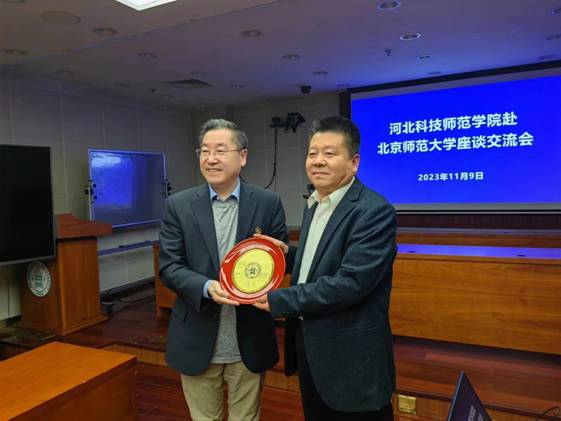 2023年11月9日,校党委常委、副校长冯瑞银带领校长办公室、人事处、教务处、学工部、招生就业处负责人和相关同志一行6人到北京师范大学学习交流。北京师范大学党委常委、副校长周作宇主持交流会并与相关部门负责同志全程参与交流活动。