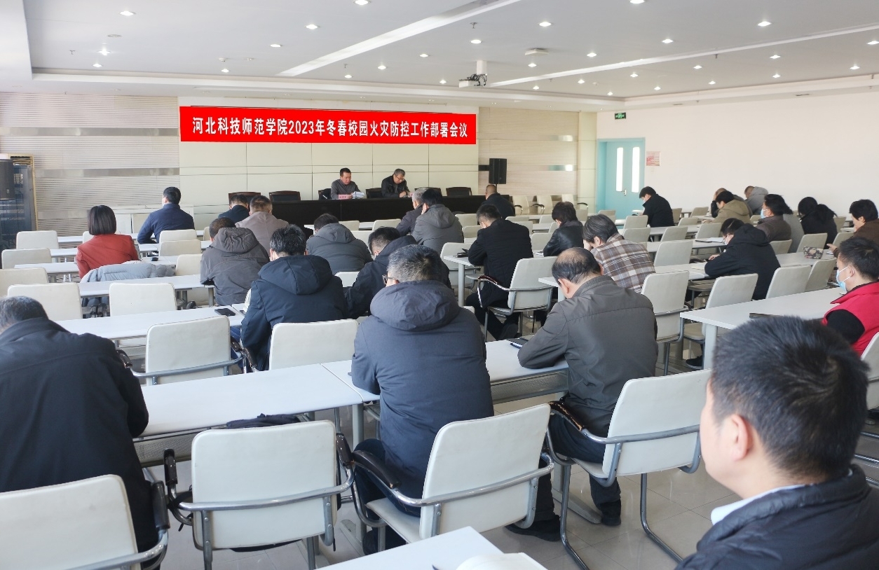 2023年12月6日,Beat365冬春火灾防控工作部署会议在秦皇岛校区图书馆九楼会议室召开。校党委常委、副校长蒋爱林出席会议,学校各职能部门、教辅部门负责人、二级单位主管安全工作领导参加会议。