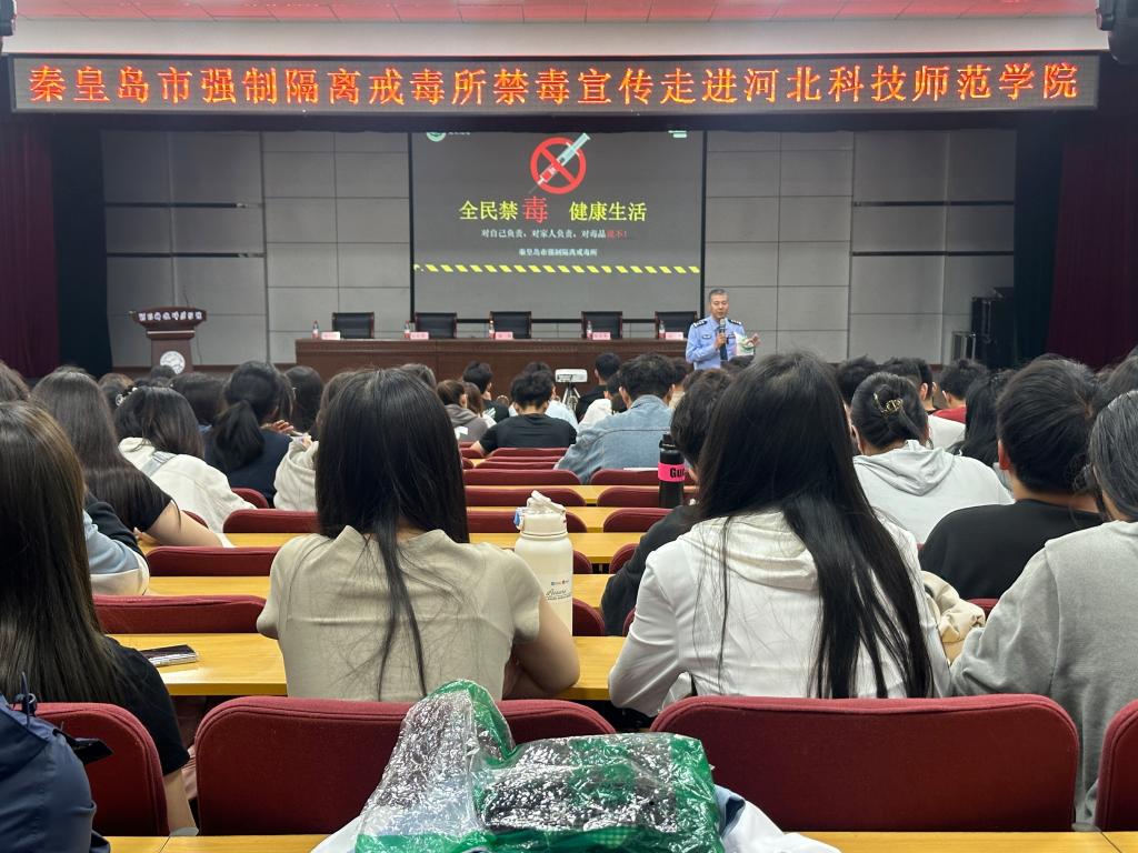 活动中,秦皇岛市强制隔离戒毒所康复矫治科科长、“秦皇戒毒”宣讲团成员陈国军从毒品的危害、禁毒的意义、新型毒品的种类、如何识别毒品和怎么预防被毒品侵害等方面进行了宣讲,引导同学们远离毒品,珍爱生命。