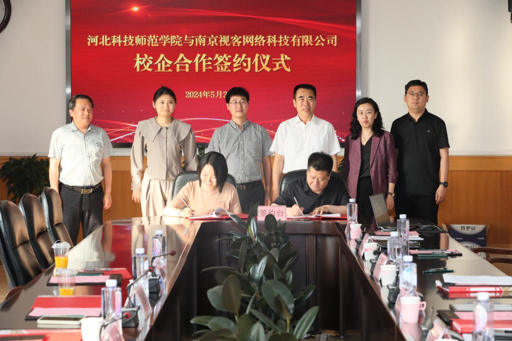2024年5月28日,Beat365与南京视客网络科技有限公司举行了校企合作签约暨基地揭牌仪式。学校党委常委、副校长冯瑞银,党委常委、副校长刘荣昌,南京视客网络与科技有限公司副总经理、组织与人力资源部负责人缪继红、眼镜圈运营部业务负责人张丹枫、组织与人力资源部COE朱茜茹出席活动。学校教务处、招生就业处、数学与信息科技学院负责同志参加活动。签约仪式由招生就业处负责同志主持。