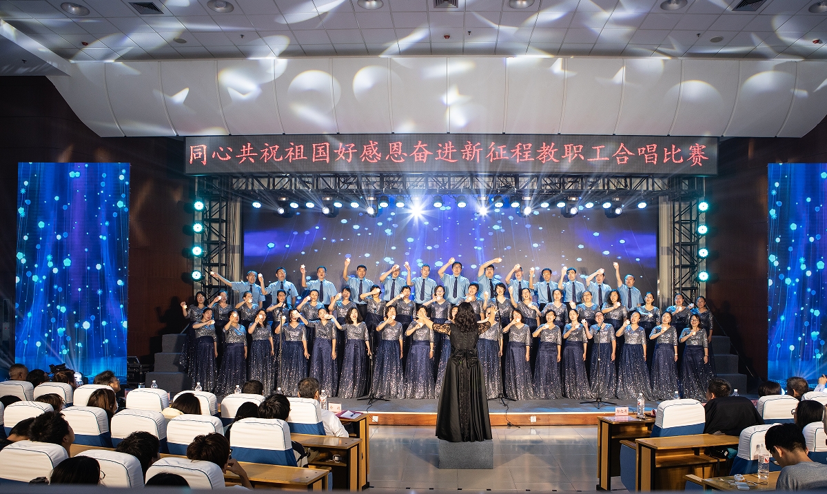本次合唱比赛各单位团结一心、精心策划,排练爱国歌曲,教职工积极参与,场上倾情演唱,最后比赛全校教职欢聚一堂,用歌声抒发对祖国的热爱和赞美之情。(编辑:孙艳敏 审核:王荣加)
