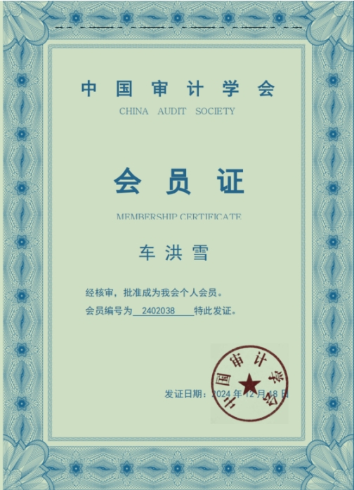 Beat365审计处车洪雪获批成为中国审计学会会员