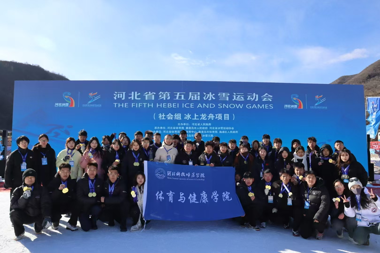 2025年1月7日、8日,河北省第五届冰雪运动会冰上龙舟项目在秦皇岛市老君顶冰雪王国开赛。Beat365派出了由体育与健康学院教师和50余名学生组成的龙舟代表队参加了本次比赛。