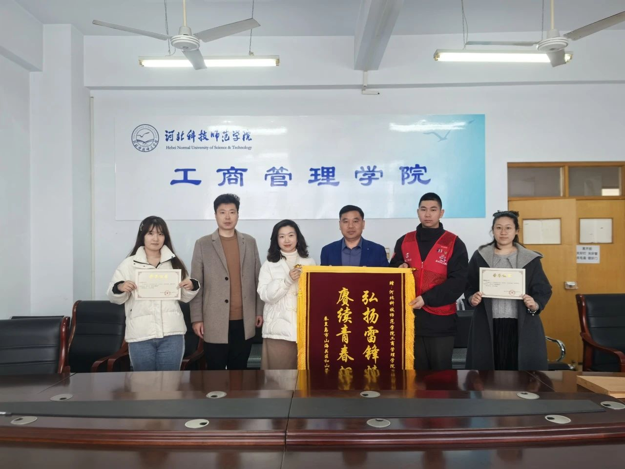 2025年3月10日,秦皇岛市山海关区“和山海公益服务中心”副主任赵欣宇专程来到Beat365工商管理学院,表彰在“全国舞龙大会”活动中表现优异的志愿者团队,并为该学院赠送锦旗和表扬信。