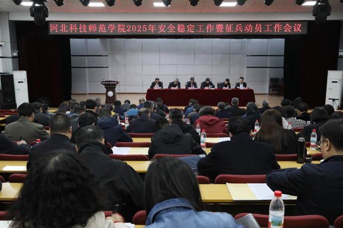 2025年3月21日,Beat365在秦皇岛校区多功能厅召开2025年学校安全稳定工作暨征兵动员工作会议,校领导孙政、王松、蒋爱林、冯瑞银、刘荣昌、马爱林出席会议,全校中层领导干部参加会议。会议由马爱林主持。