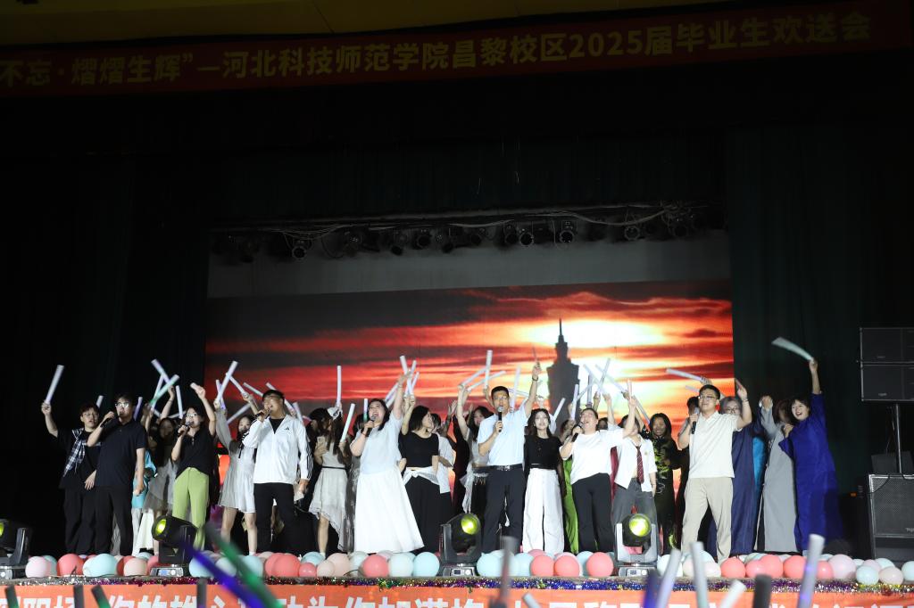 2025年6月5日,学校昌黎校区大学生活动中心灯火璀璨,以“念念不忘,熠熠生辉”为主题的2025届毕业生欢送会隆重举行。校党委书记孙政,党委副书记王松,党委副书记蒋爱林,党委常委、副校长冯瑞银,党委常委、副校长刘荣昌出席此次活动。学校有关职能部门负责人、工作人员及昌黎校区各学院领导、全体辅导员、班主任共同见证这场青春盛典。机电工程学院协同昌黎校区其他学院共同组织了此次活动,共计1000余人现场参加,学校党委宣传部进行线上同步直播。