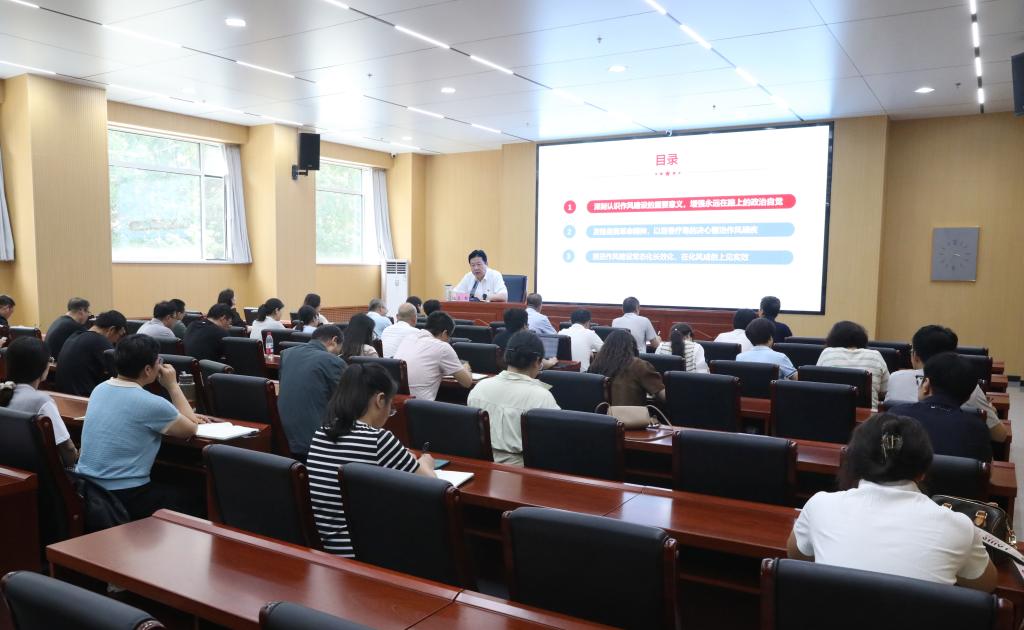 2025年6月30日,为庆祝中国共产党成立104周年,深入贯彻中央八项规定精神学习教育,激励全校教师赓续教育初心、担当育人使命,引导青年学子筑牢信仰之基、补足精神之钙,学校党委副书记王松在秦皇岛校区逸夫楼B区报告厅以“推进作风建设常态化长效化,在化风成俗上取得实效”为题,为全校党员干部和师生上了一堂生动的专题党课。学校党委宣传部、党委统战部、法制办,工会,图书馆,分析测试中心,马克思主义学院、财经学院、文法学院、园艺科技学院党员干部和师生代表共100余人参加了党课学习。
