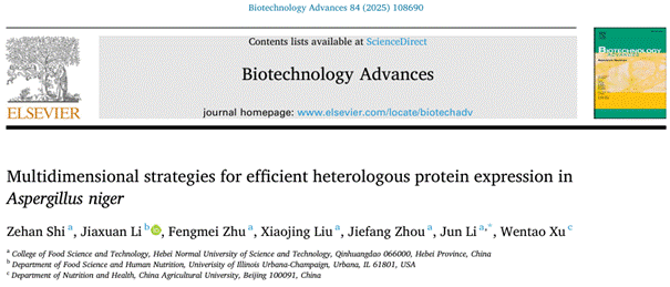 近日,食品科技学院李军教授团队在生物技术领域取得重要突破,其学术论文《Multidimensional strategies for efficient heterologous protein expression in Aspergillus niger》在国际顶级期刊《Biotechnology Advances》成功发表。该期刊五年影响因子(IF5-year)高达14.6,属中科院1区Top期刊,是行业内公认的高影响力顶级期刊。